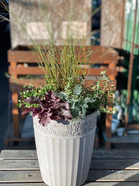 今日のご紹介は葉っぱのみで作った寄せ植えです。