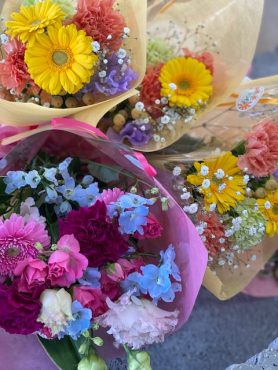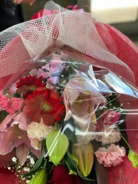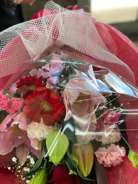※お花束は当日プレゼントか翌日プレゼントかでラッピングの方法が異なりますので、今日受け取りで翌日プレゼントなさる場合は店頭にてその旨教えていただけたら幸いです!