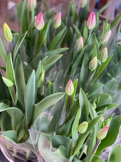 切り花もチューリップは入っておりますよ!後ラナンキュラスやガーベラなど、春のお花がたくさん入ってきております。