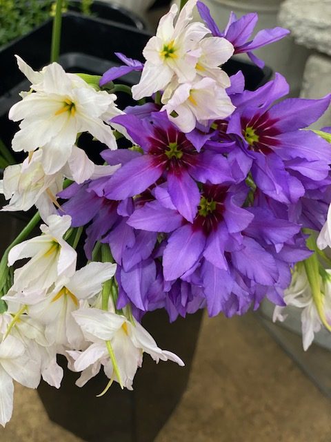 リューココリネはちょっと珍しい白が入ってきました。もちろん定番の紫もありますよ、な一枚です。