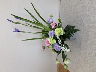 本日は花しょうぶを使ったアレンジメント。